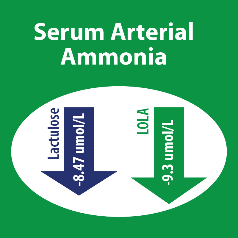 In 3 separate clinical trials, oral LOLA has been shown to offer equal or superior efficacy to lactulose in regard to controlling or reducing ammonia levels as well as Health Related Quality of Life scores. The efficacy of LOLA is also paralleled by an improved GI side effect profile versus lactulose.
