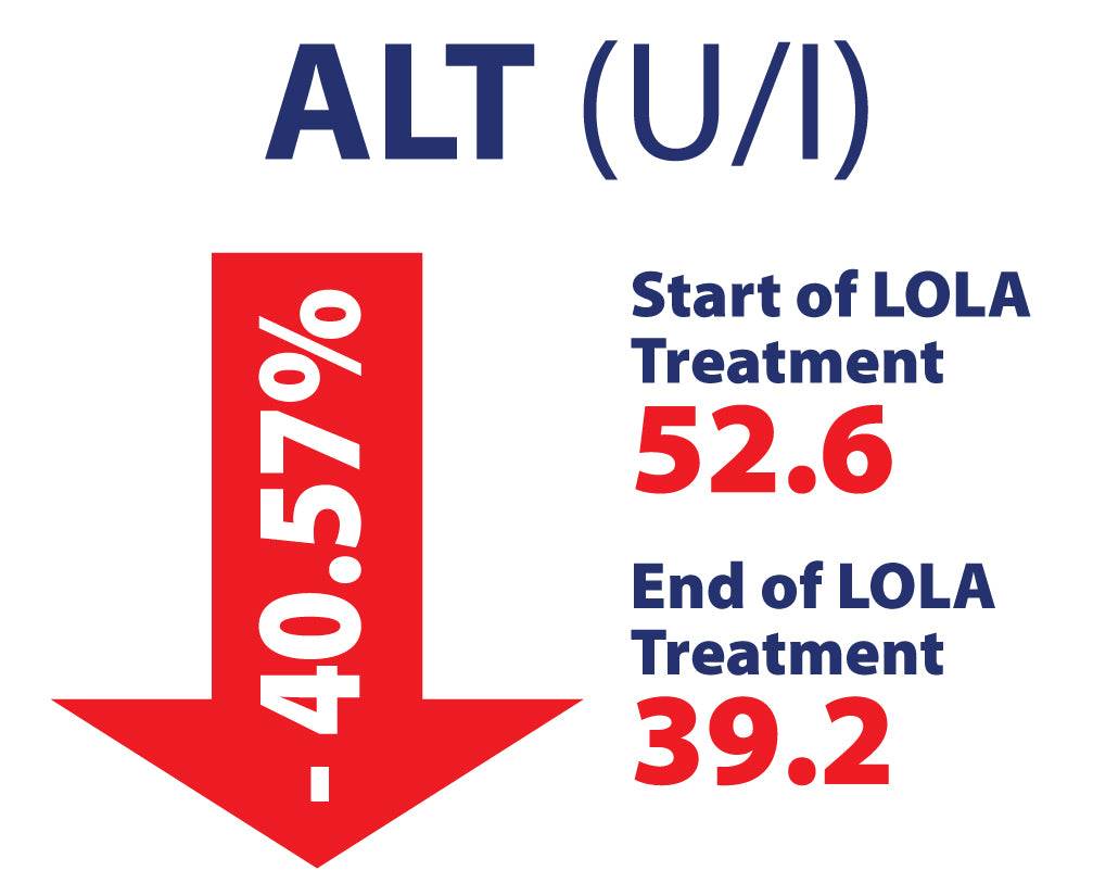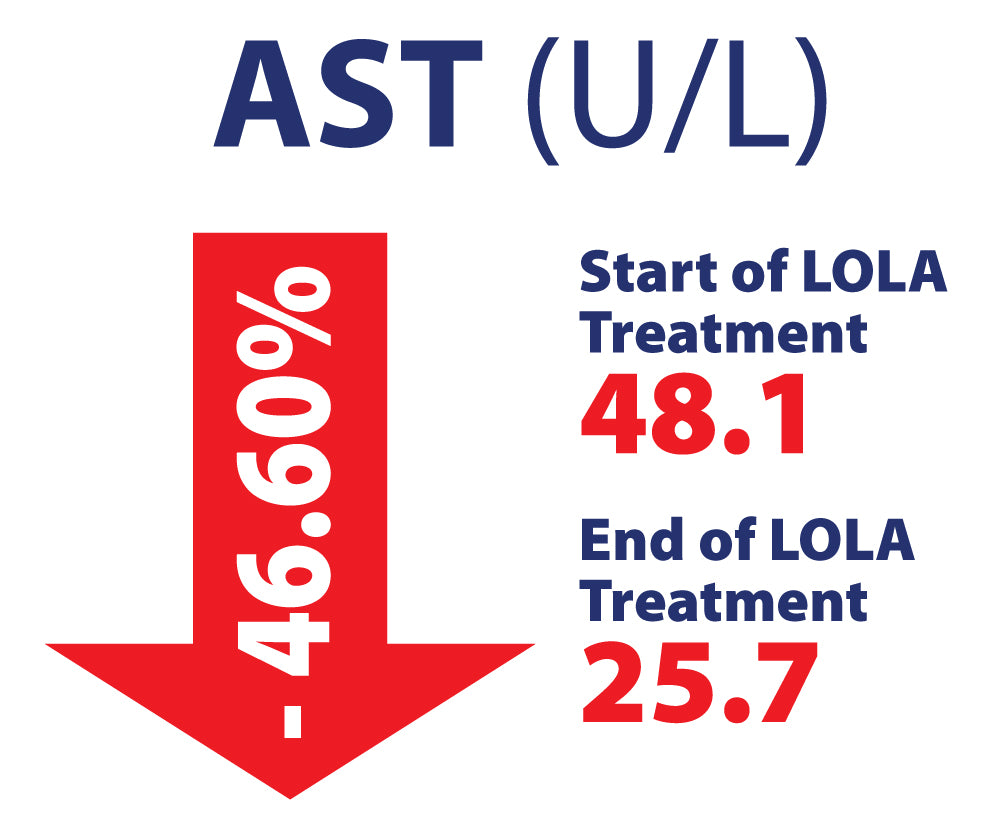 The use of LOLA for people with chronic liver diease including NAFLD/NASH has shown an improvement in liver enzymes.